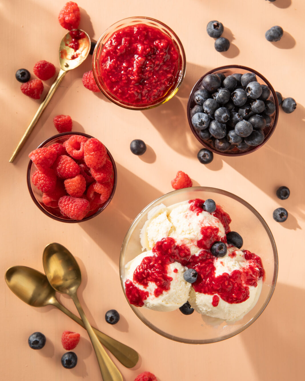 Vanilla Ice Cream and Fresh Raspberry Compote