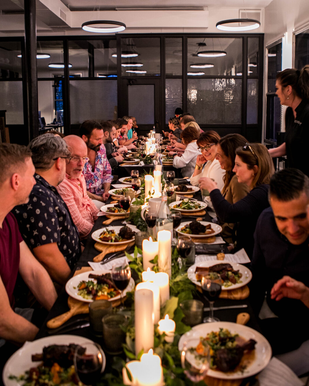Guests sip a rosemary Campari spritz from TABLE Publisher Justin Matase before sitting at long tables with white candles and simple, elegant greenery. The evening’s vibe proved vibrant and conversational, with the palpable passion of all involved adding to the buzz.