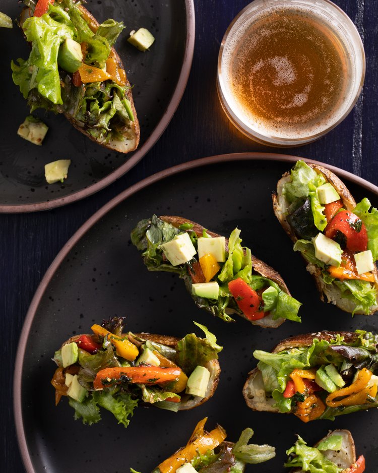 4. In a medium mixing bowl combine peppers, parsley, chives, mustard, apple vinegar, olive oil and avocado. Gently mix until fully combined.