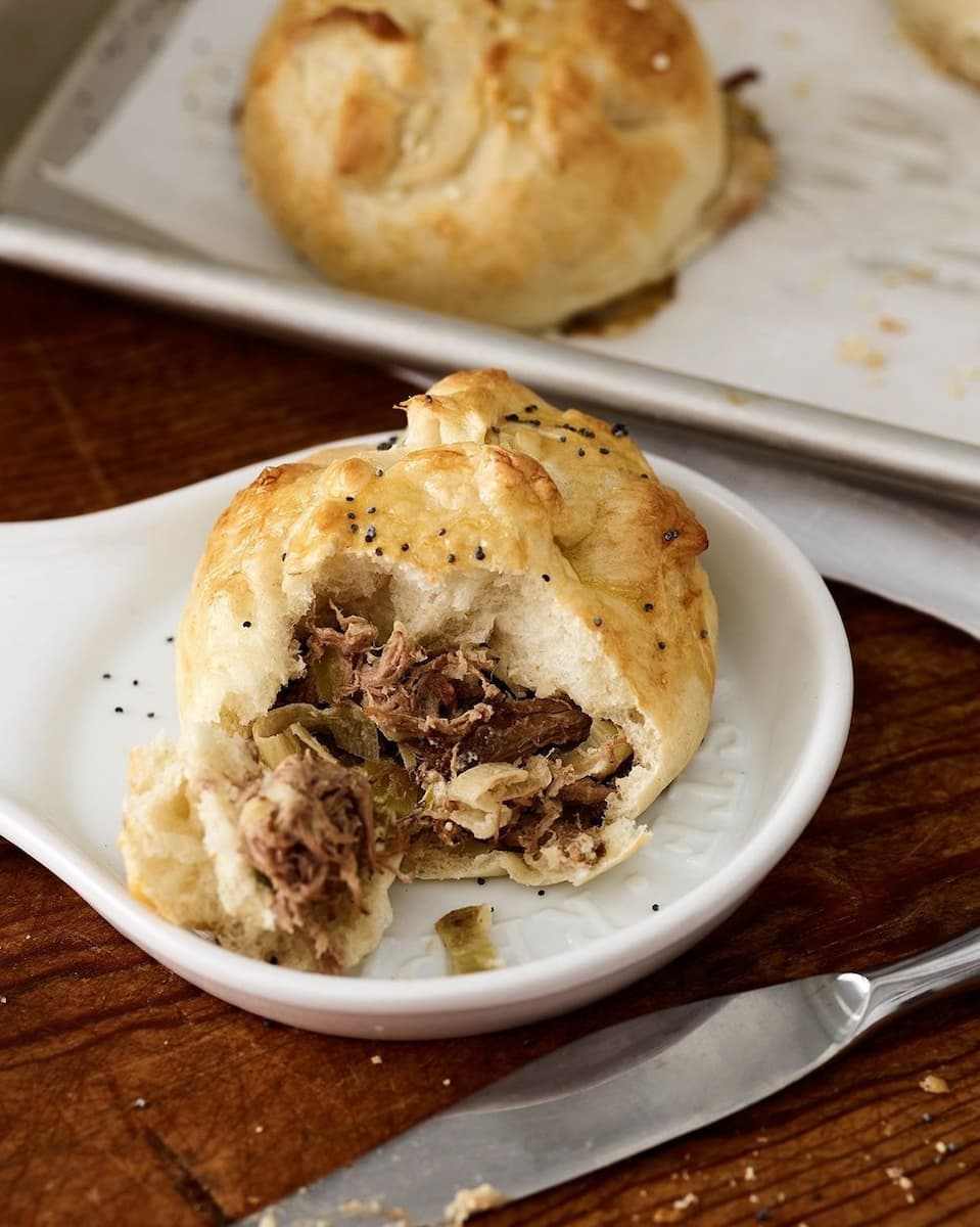 Savory and succulent inside a doughy pillow.