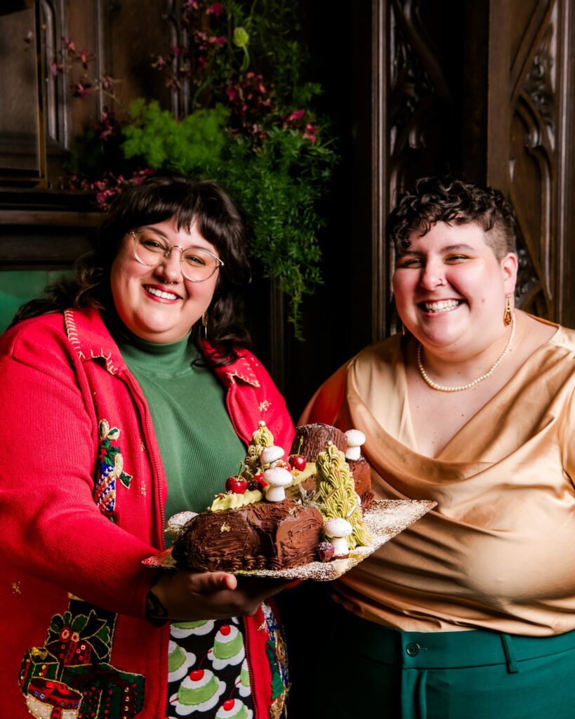 At Georgie’s Corner Café, Head Pastry Chef Marla Harvey and Sous Pastry Chef Alyssa Zimmerman transform tradition into artistry with their Black Forest Cherry Yule Log. Layers of airy chocolate sponge cake, tart cherry whipped filling, and a splash of cherry liqueur create bold, balanced flavor. They finish the dessert with whipped chocolate ganache, meringue mushrooms, and sugared rosemary to evoke a snowy forest. The result blends nostalgia and innovation in a stunning holiday centerpiece.