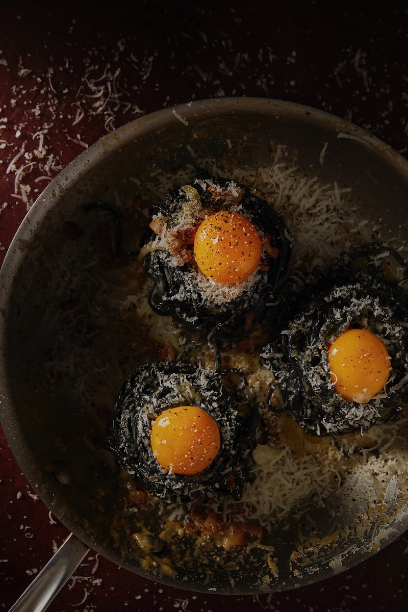 Carbonara with Handmade Charcoal Trenette