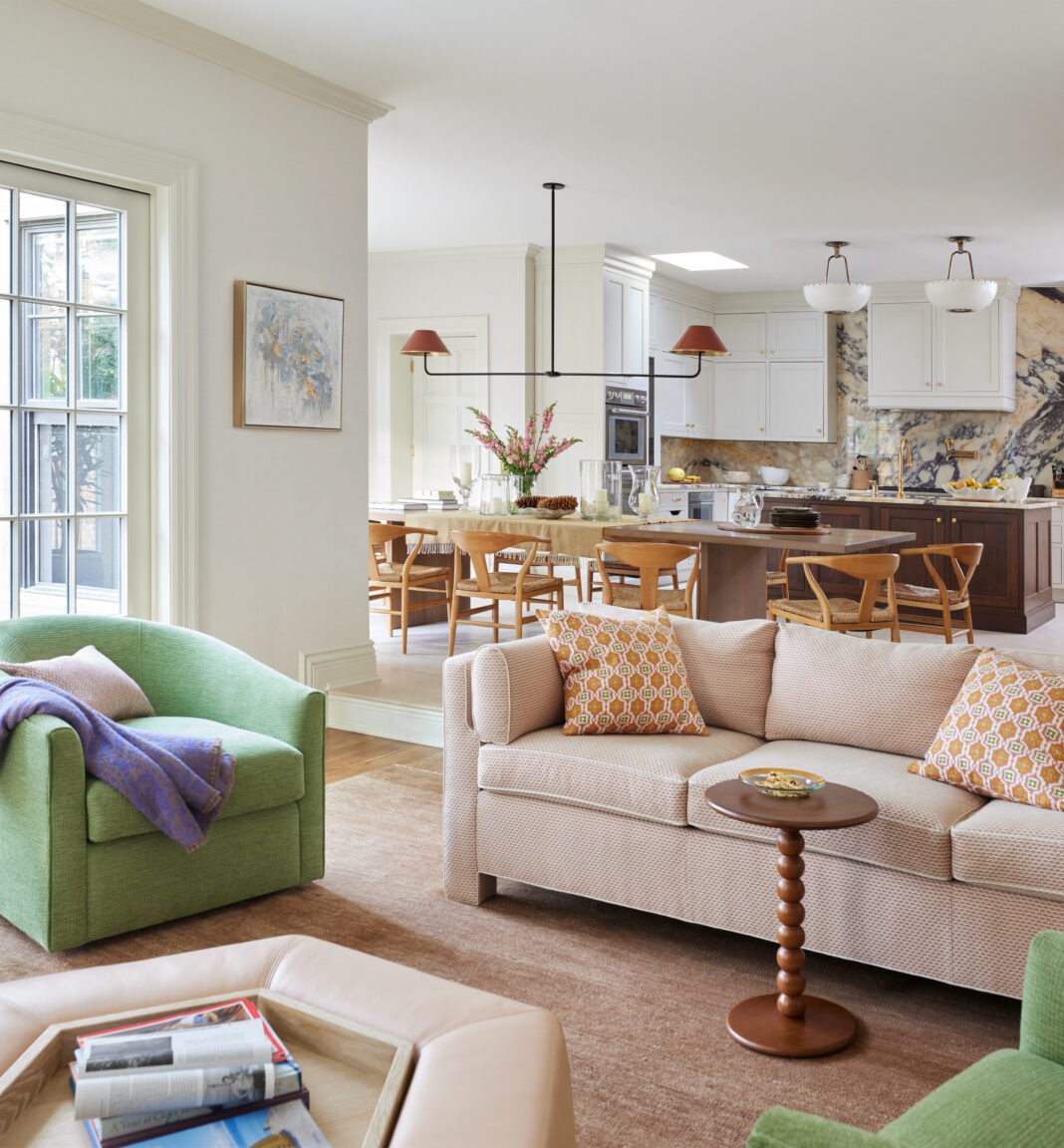 The couple was also moving from a larger home and wanted to incorporate as much of their furniture as possible. This was something akin to solving a puzzle. “Their original house had far different scale and proportions,” she says, but she managed to fit in even some of the largest pieces.