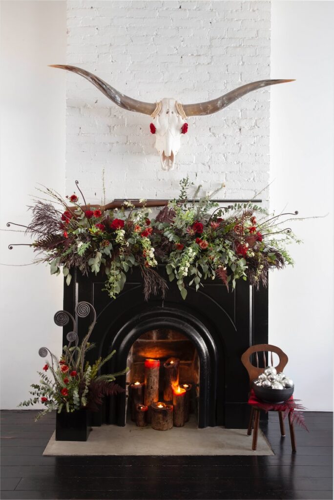 Living among such fine-boned structures, it makes sense that Camden collects skulls. “They remind us of the durability of life—and that we all look the same on the inside,” he explains. His skulls take on a festive look during the holidays, filled with carnations and red ferns.