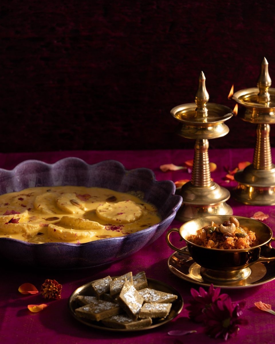 Traditions focus on the preparing and sharing of sweets. In South India, “we usually start our meals with the dessert,” says Sankaran, which is why they’re featured here first. She also notes that Indian desserts are often time-consuming to prepare, and her time-saving approach is non-traditional––but just as delicious.