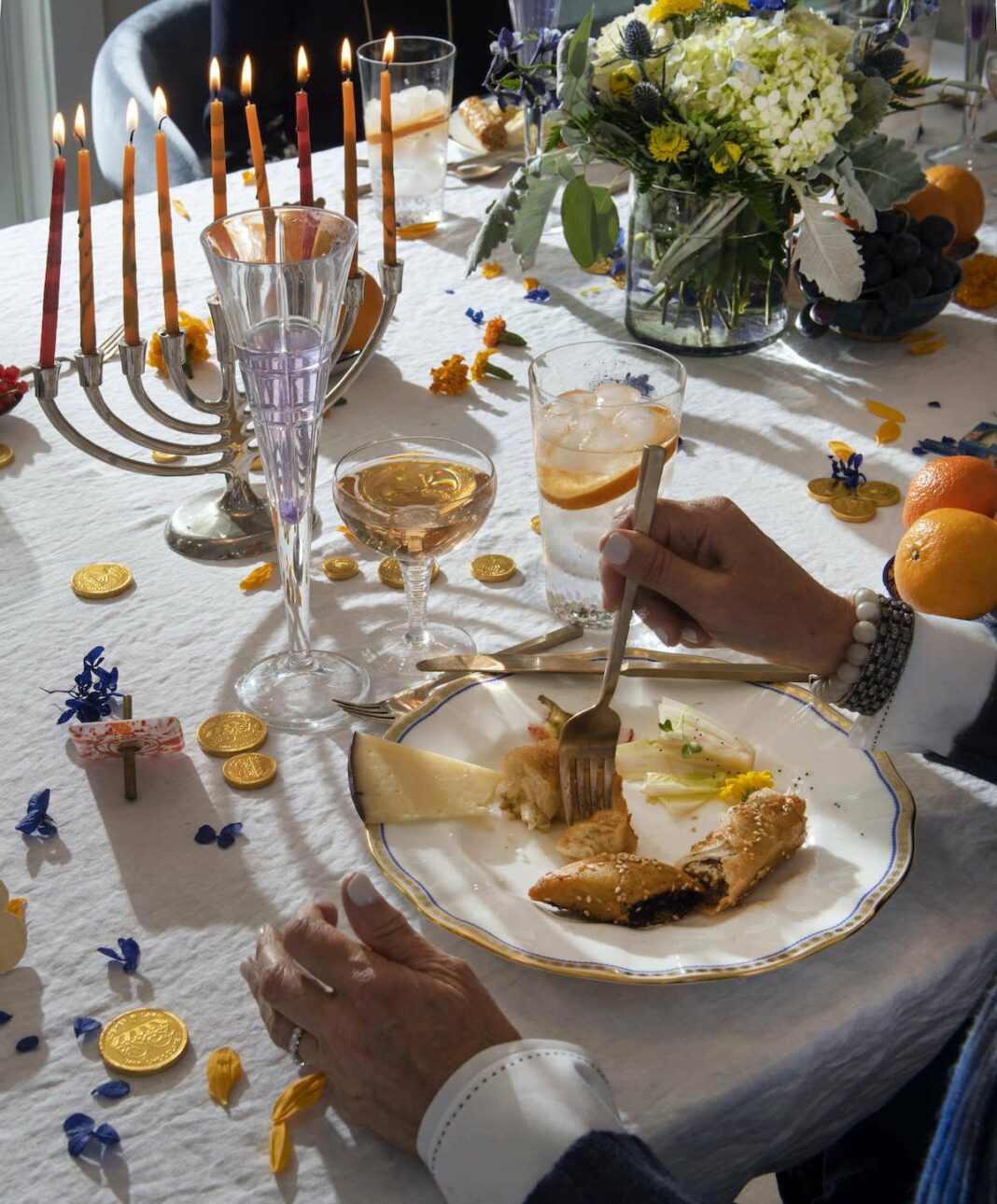 A magical Hanukkah dinner. At center, a Hanukkah 75 cocktail.