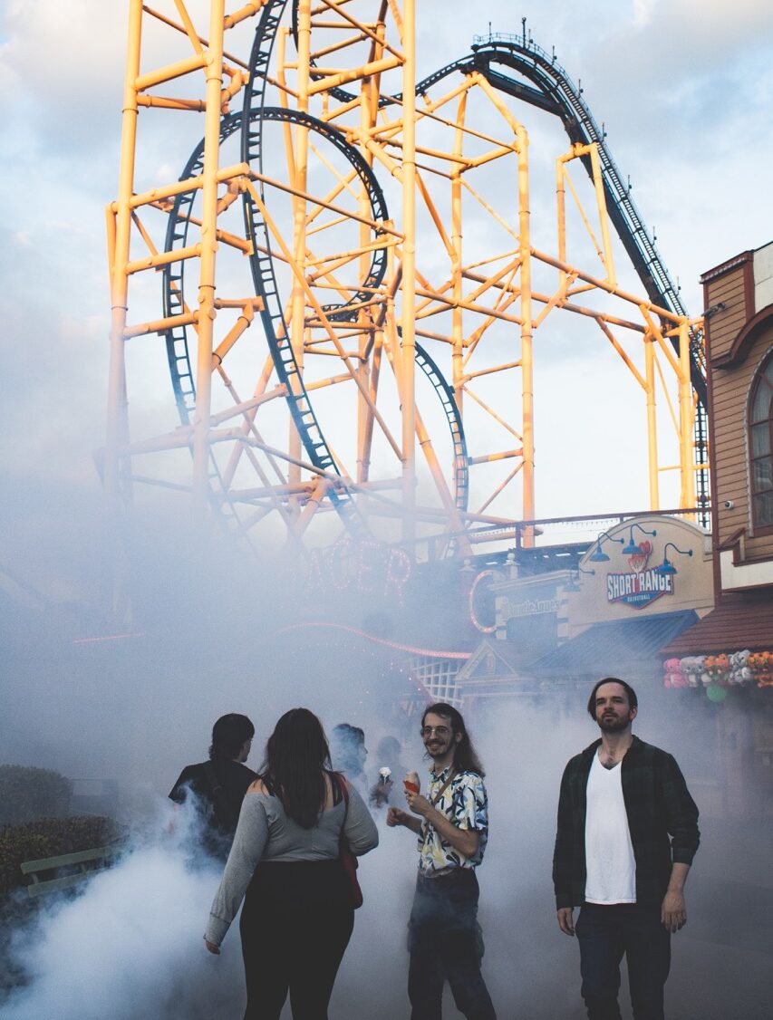 We took a group of five friends out on a trip to Kennywood’s Phantom Fall Fest to explore all the jump scares, deliciously creepy eats, and Halloween-themed fun. With comfy outfits for the warm weather fall day, the group ventures through the foggy tunnels that open up into a world of spooky costumes and autumn colors that make Kennywood somehow seem a little brighter than usual, despite the eerie setting.