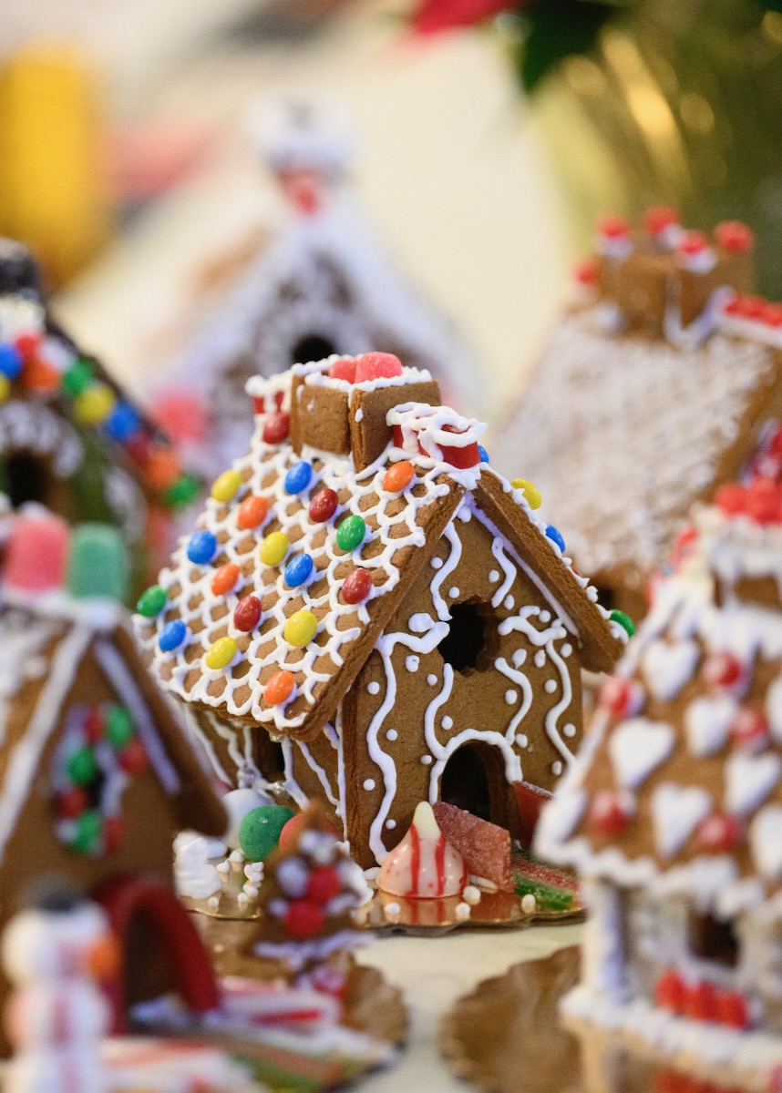 Constructing gingerbread houses can be challenging, but Lauren’s years of experience building flawless tiered cakes make it a piece of cake. To keep things light and stress-free, she preps everything in advance. Each participant receives a pre-assembled house, piping bag of icing, and assorted candies — letting creativity take center stage.