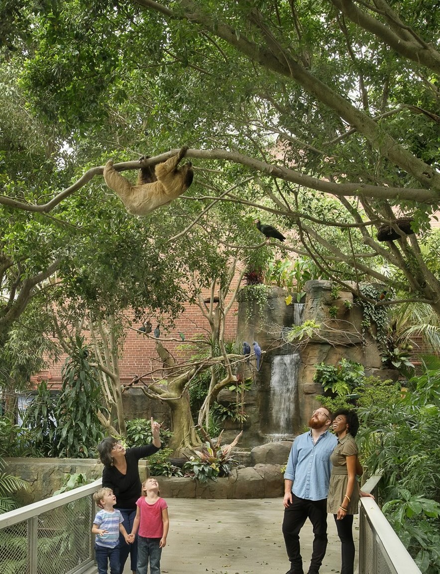 The Tropical Rainforest room at the National Aviary is one of the best ways to transport yourself somewhere warm. Not only will the temperature keep you cozy, you’ll be welcomed by Snowy Egrets, Victoria Crowned Pigeons, and even a Two-toed Sloth. The other rooms let you explore Wetlands, Treetops, Penguin Point, and Grasslands.