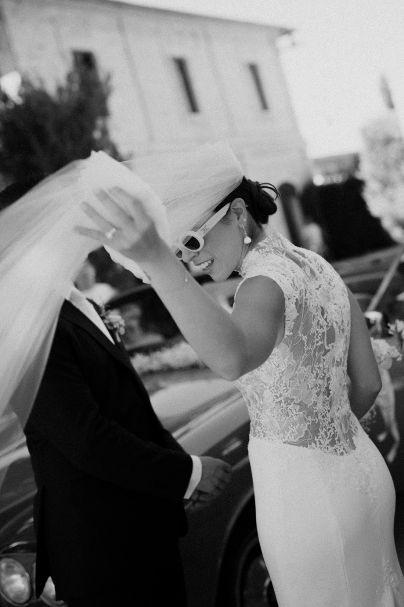 “In Italy, the tradition when you leave the church is for everyone to throw rice at you to wish you good luck. That was collectively one of our favorite moments. It’s also one of our favorite pictures from the entire day,” Cristina says. Residents also cheered their nuptials from surrounding the piazza and the balconies above.
