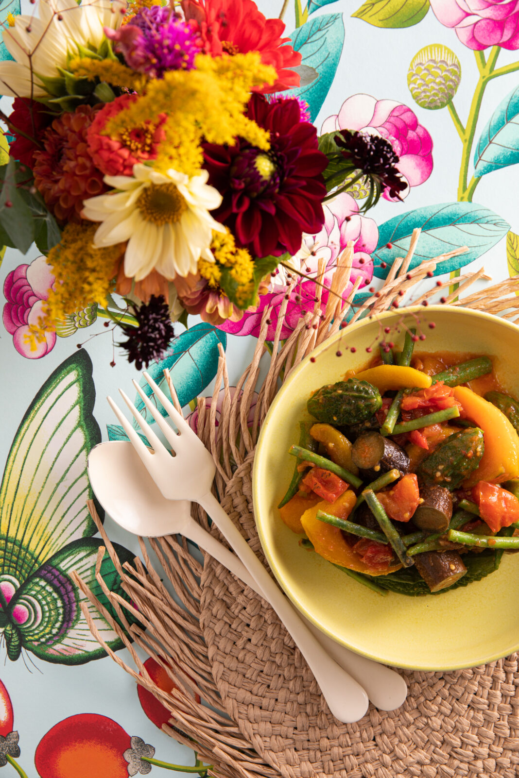 Pinakbet is a regional specialty from Ilocos which has become ubiquitous to a national dish with varying distinctions depending on the ingredients. A key ingredient is either bagoong alamang (fermented shrimp paste, which I prefer since it’s easier to find in any Asian grocery store), or burong isda (fermented fish sauce, akin to fish sauce but different in appearance). Cooking the vegetables in succession at the right doneness and allowing the liquid from each vegetable to cook the dish into a stew is what makes the recipe successful. This dish can be vegan without the addition of either key ingredient.