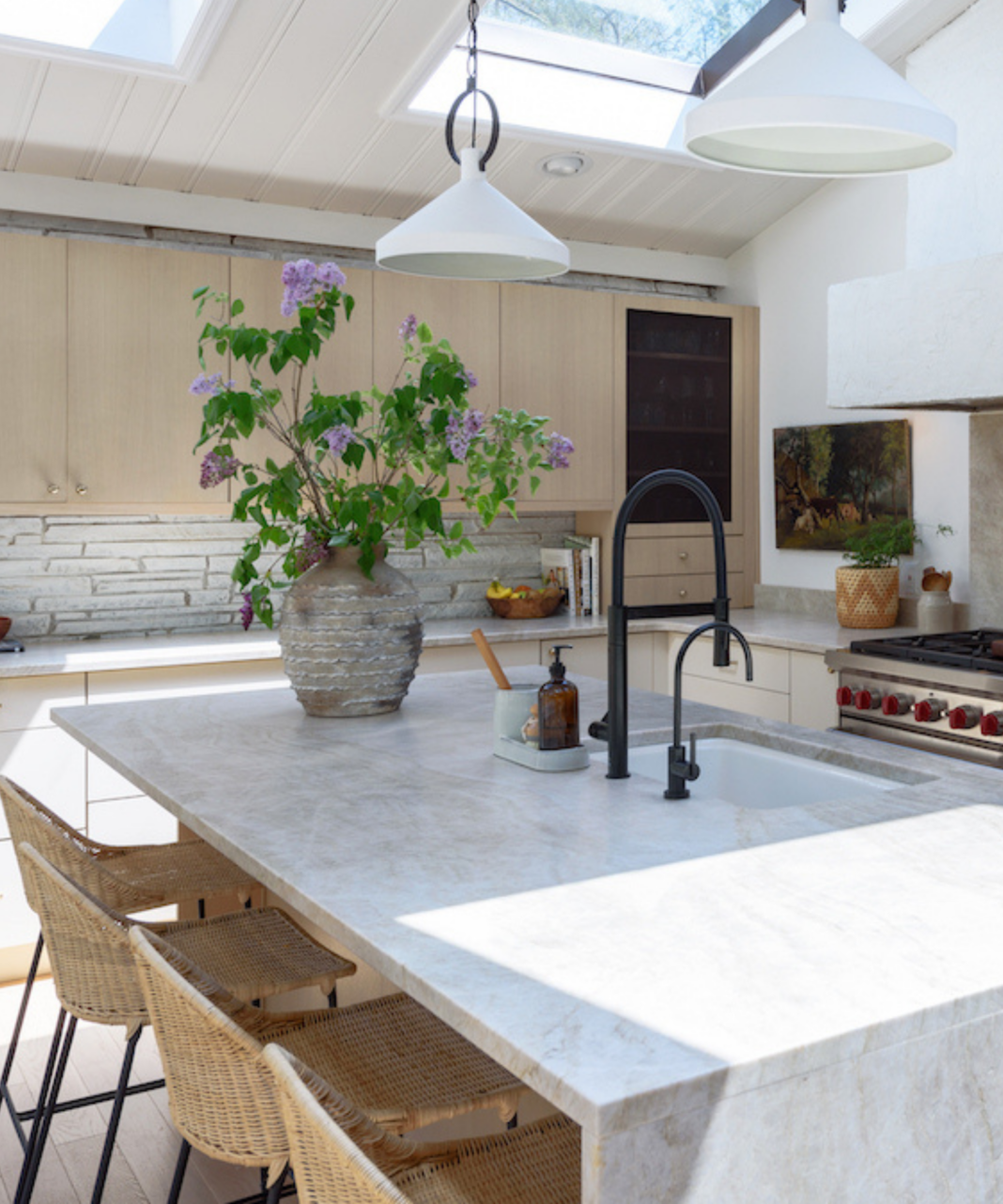 Natural light from skylights helps make this kitchen bright and airy