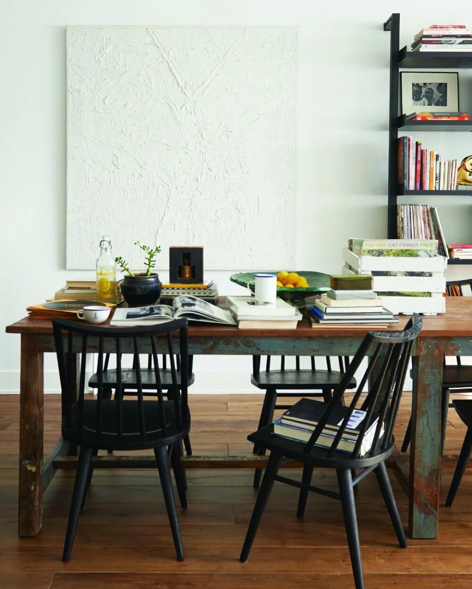 CM: The configuration allows for us to be in the kitchen or doing laundry while staying actively involved with the boys while working on an art project on the dining table or a puzzle in the living room. Coming from Brooklyn, we lived in loft apartments and in the back of our vintage store, so we are used to being together all in one space. Our first floor has the feel of a Brooklyn loft. It offers a direct line of sight from the kitchen to the front living area, allowing our family to be together while still offering ample space for each of us to tackle our own tasks, like assembling the best Lego castle on our large vintage farm table.