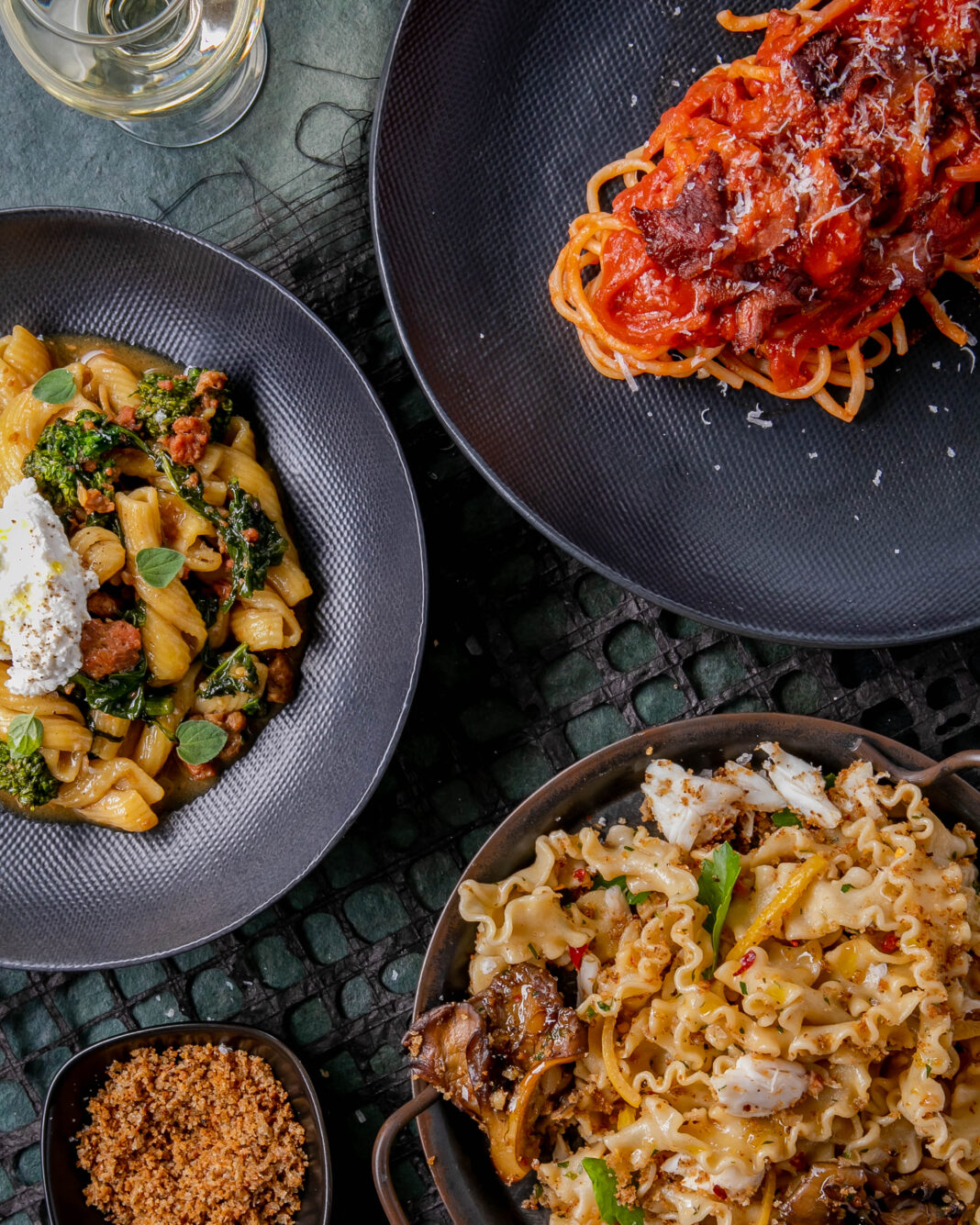 To borrow an idea from another part of the Mediterranean, a tapas-style Italian mean at Fish Nor Fowl is a great idea. Share a chef-curated appetizer board of dips, delicacies, meats, and cheeses. Continue sharing with an assortment of small plates, pastas, sides, and entrées. Example: a small plate of mussels, entrées of wild mushroom pappardelle and branzino, and sides of broccolini and polenta, will likely satisfy a table of four. You’ll have room for dessert and an after-dinner amaro.
