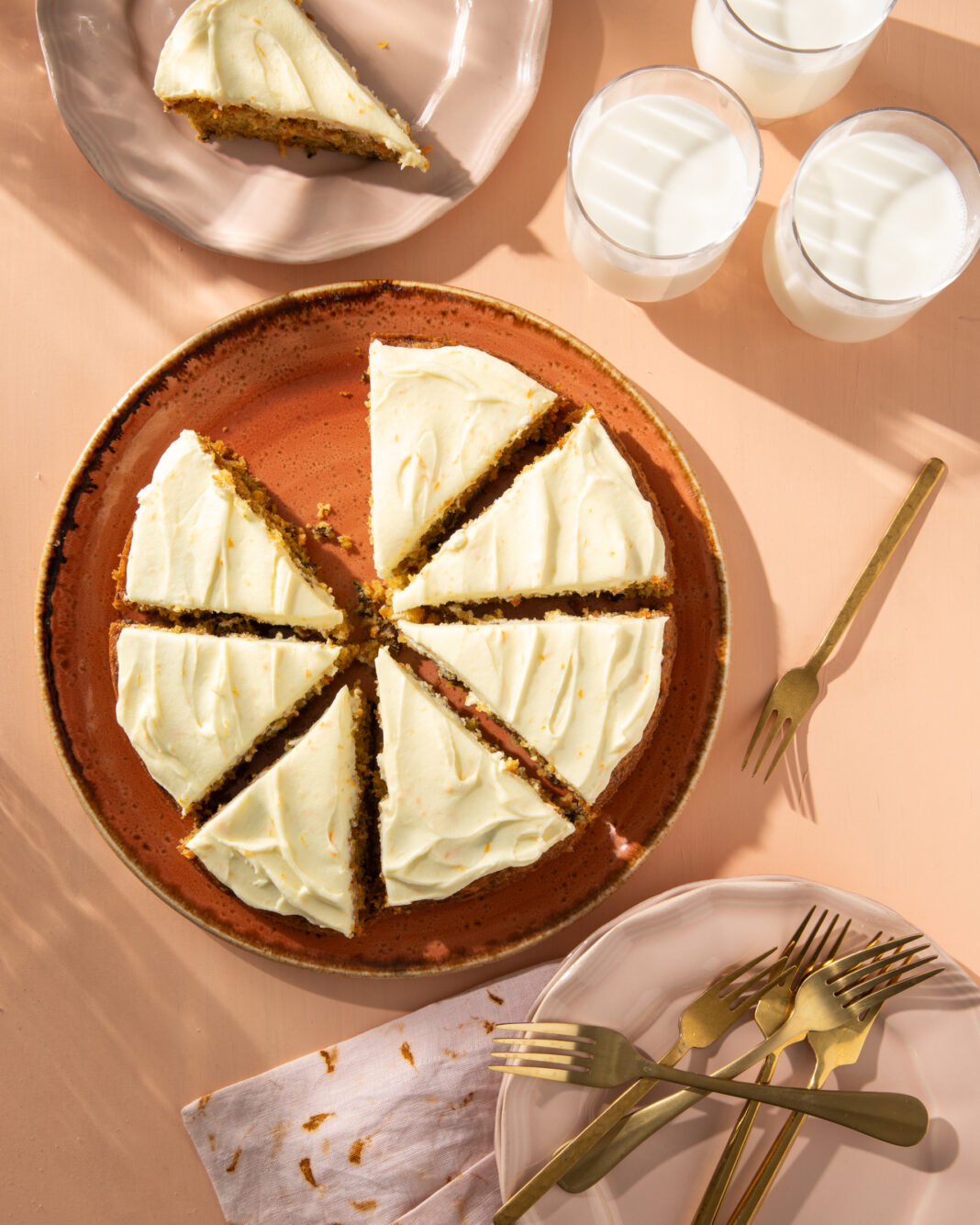 - Make the frosting. In a mixing bowl fitted with the paddle attachment, cream butter and cream cheese until completely smooth. Slowly add in powdered sugar, followed by orange zest and vanilla. Cream until smooth. Once the cake is completely cool, frost the top of the cake.